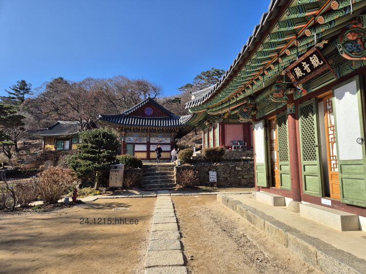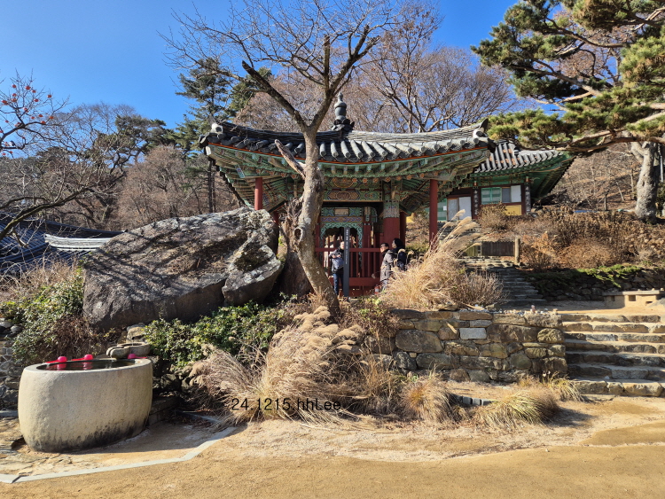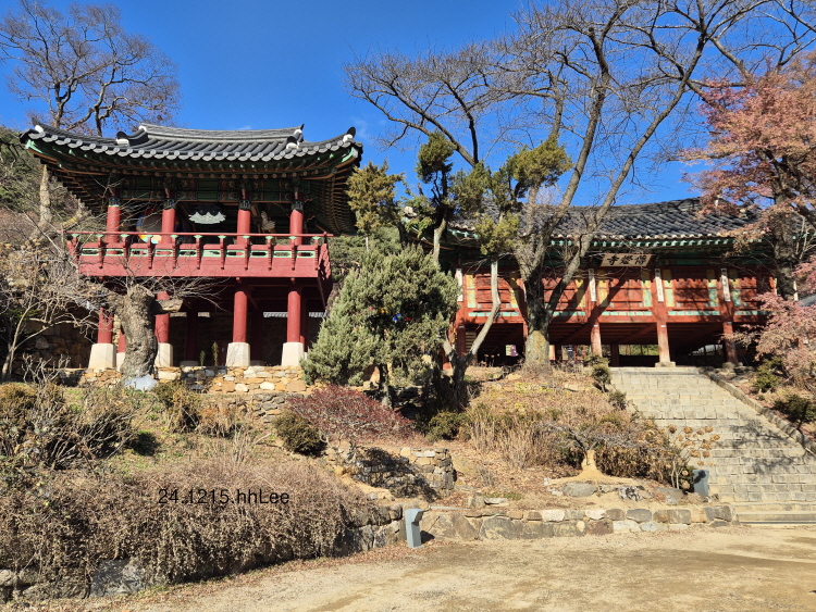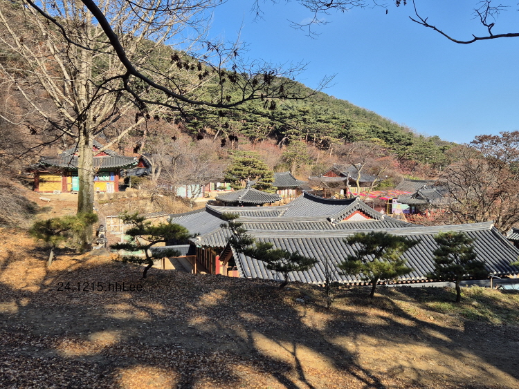 내가 이번에 특히 좋았던 점은 잎이 거의 진 전등사 입구 숲길의 고목들이었다. 은행나무, 단풍나무 같은 잘 알려진 나무부터 이름 모르는 나무까지 수형이 아름답고 세월의 흔적에 기품을 더한 아름다운 나무들을 새삼 느낄 수 있었다. 아마 겨울에 들른 적이 없어서 나목들의 아름다움이 두드러졌을 성 싶다. 작년(2023) 가을과 지난 봄(2024)에 '갑사로 가는 길', 정확히는 길가의 나무들이 좋아 두 번 연이어 들린 공주 계룡산 갑사 못지 않은 아름다운 나무들을 새삼 느낀 시간이었다.