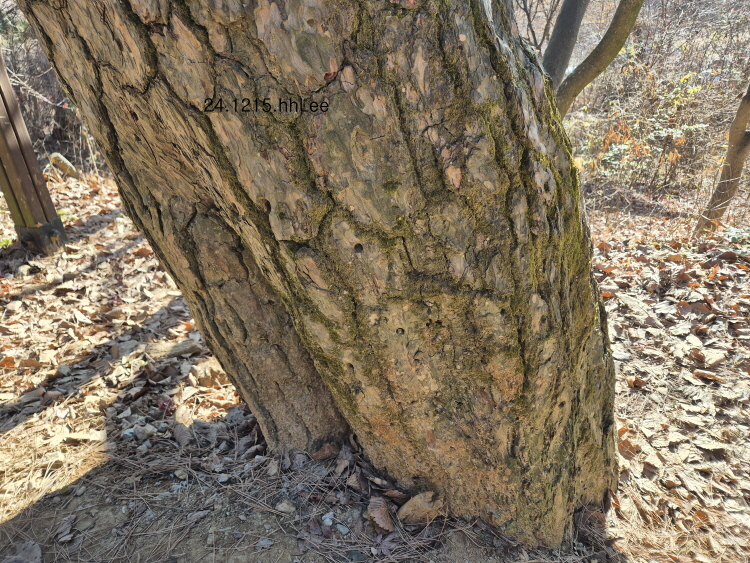 <전등사 입구 소나무의 일제에 의한 송진 채취 흔적>