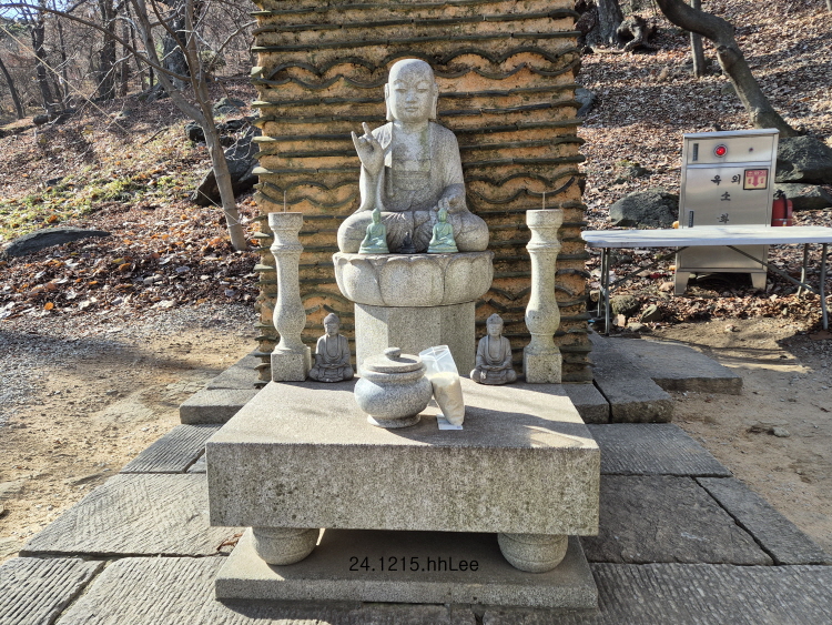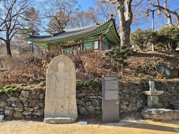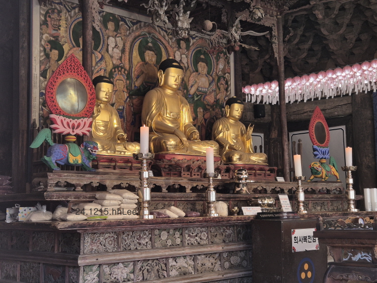 <전등사 극락전과 뒤편의 불상>