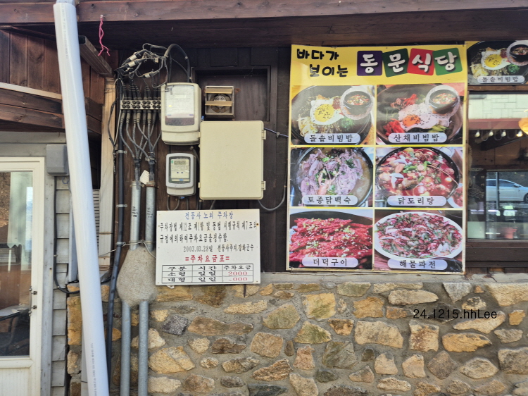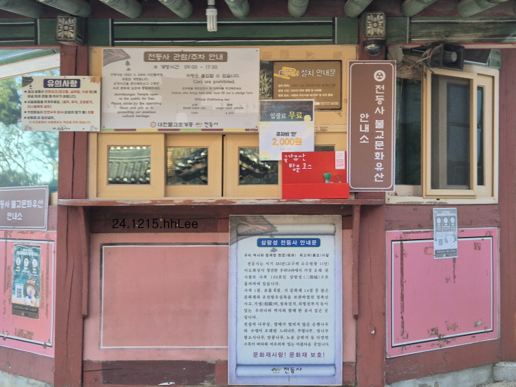 이곳은 예전에는 매표소가 있던 곳인데 2023년 5월부터 무료입장이라 전등사 불교문화유산 안내소로 이름이 바뀌었다. 대신 주차비(소형 종일 2,000원 / 대형 8,000원)만 받는다. 아래 사진의 상가 밖으로 드러난 계량기가 새삼스럽다.
