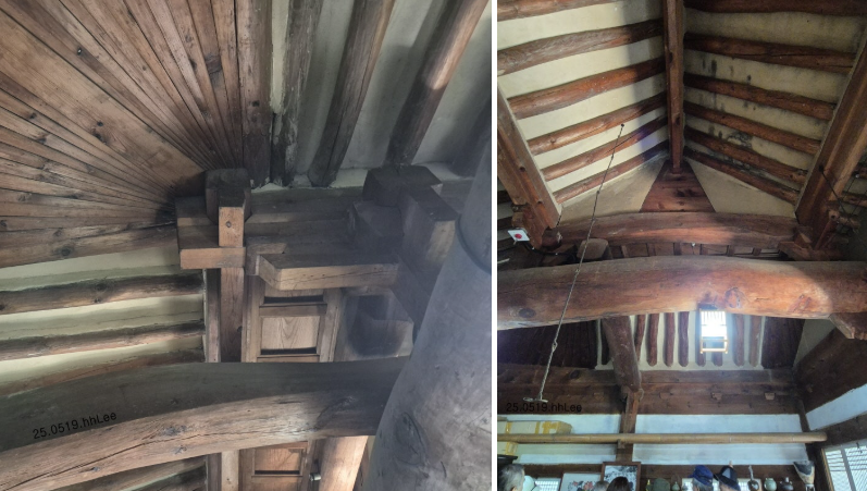 <만산고택 별채 칠류헌(七柳軒)의 서까래와 대들보>