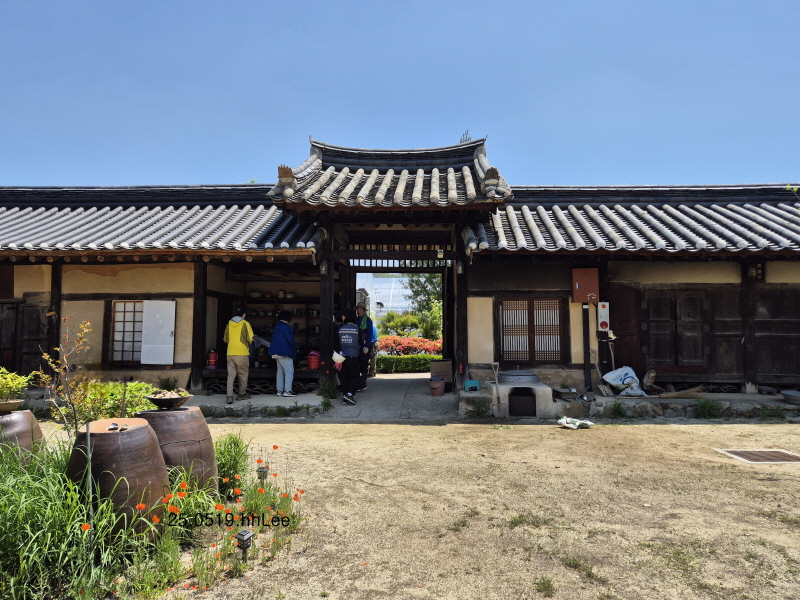 안채는 생활공간이라 들어가지 않고 장독대와 다육이 화분으로 아기자기하게 꾸민 서쪽 마당을 보고 뒷뜰로 돌아나왔다. 세 번째 사진은 안채 서쪽 마당 안쪽에서 본 안채 대문이다.