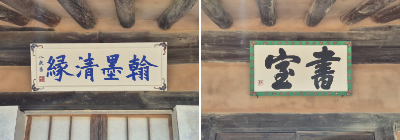 왼쪽의 한묵청연(翰墨淸緣)은 대한제국의 마지막 황태자인 영친왕이 8살 때 쓴 글씨로 '문필로 맺은 맑고 깨끗한 인연'이란 뜻이다(어린애가 알고는 썼을까? 뜻이 너무 심오해서...). 오른쪽의 서실(書室)은 사랑채의 차군헌(此君軒)을 쓴 석운 권동수의 글씨이다. 서실은 자녀들의 공부방이었다고 한다.