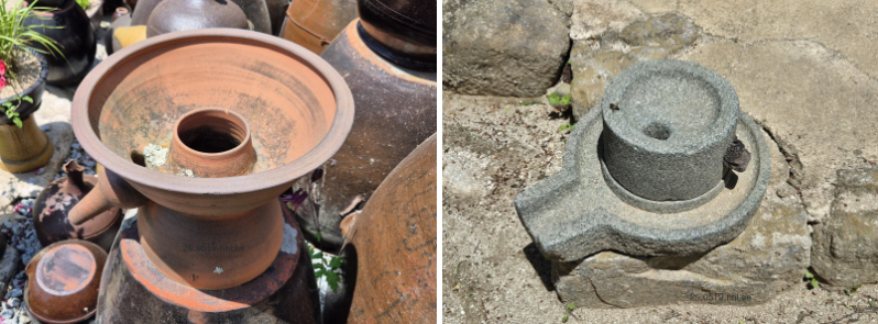 <만산(晩山)고택의 토기 소줏고리와 맷돌>