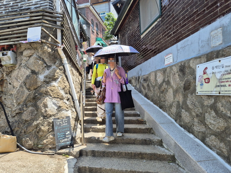 <화동길에서 삼청동으로 내려가는 돌계단과 '북촌 오버투어리즘'>