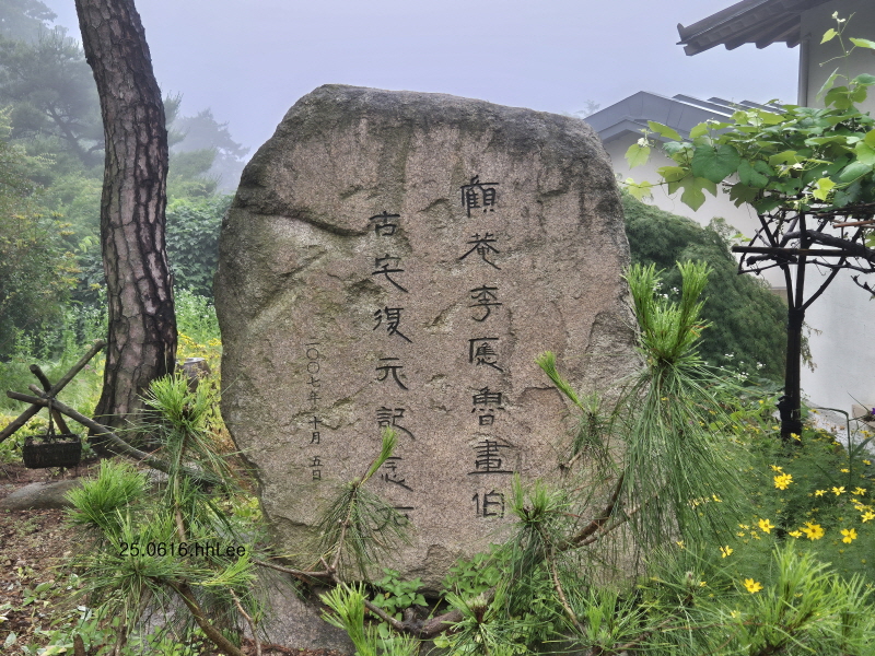<수덕여관 마당의 고암 이응노화백 고택 복원 기념비석>