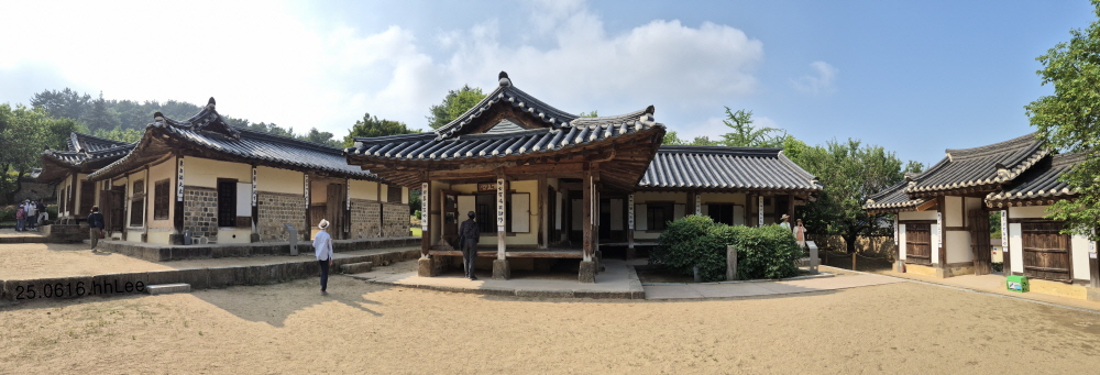 오른쪽부터 솟을대문, 사랑채, 안채이다. 사당은 왼쪽 끝 안채 모서리 뒤에 있다.