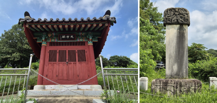 <남양주 석실마을 김상용 묘 입구의 충효각과 신도비>