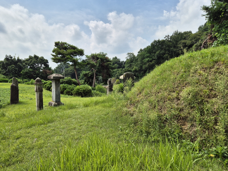 안동김씨 묘역의 묘들을 촬영하느라 조선 8대 명당이라는 김번 묘에 대한 설명은 놓쳤다. 사실은 명당이나 풍수에 관심이 없어서 쫓기는 시간에 차라리 묘를 더 보는 쪽을 택했다고 보는 게 맞지만... 평지인데다 봉분이 유난히 커서 전체적인 묘를 파악할 수 있는 뒤에서 보기를 해도 묘 앞이 제대로 보이지 않았다. 주워 들은 바로는 묘 앞의 공간이 호리병 모양이었는데 그 점이 명당이란 점과 관계가 있다고 한다.
