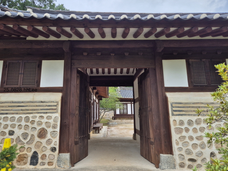 출입문 왼쪽에 보이는 옆모습은 'ㄴ'자형 사랑채, 전면은 'ㄱ'자형 안채이다.