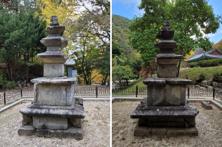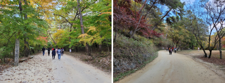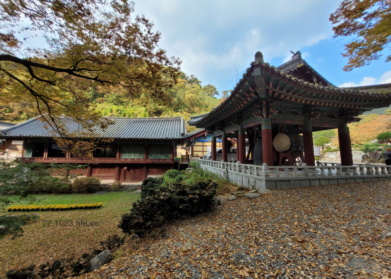 우리가 들린 22년 10월 22일은 단풍이 막 들기 시작했다. 일주문에서 고운사 본채(!)까지 거리가 꽤 길고, 양쪽의 숲이 무척 아름다웠다. 진입로(산책로)에 단풍나무가 많아 당시에 일주일 쯤 뒤에 들렀다면 단풍이 최고조였을 것이다. 하지만 2025년 3월의 화재로 숲이 전소되어버렸으니... 며칠 전 고운사 스님들의 인터뷰를 보았는데 따로 조림을 하지 않고 자연적인 회생을 기다린다고 한다.