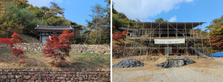<의성 고운사 삼성각과 공사 중인 명부전>