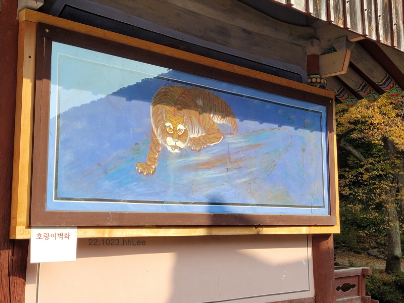 우화루(羽化樓) 왼쪽 끝 벽에 유명한 호랑이 벽화가 있다.