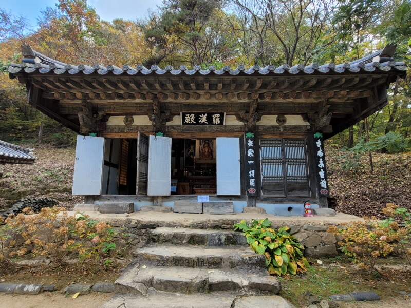다행히 이번 화재에서 살아남은 전각이다. 특이하게 왕릉의 정자각처럼 '丁'자 모양이고 안에 형태가 많이 뭉그러진 아담한 석불이 봉안되어 있다.