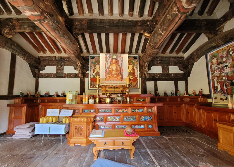 아래 사진은 극락전 내부이며, 주불인 아미타불은 외부 전시 중.