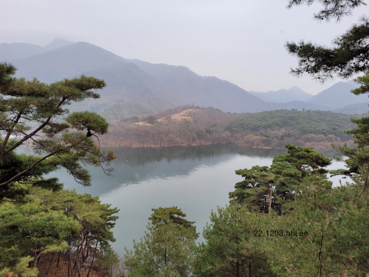 <산막이 옛길 소나무숲과 괴산호>