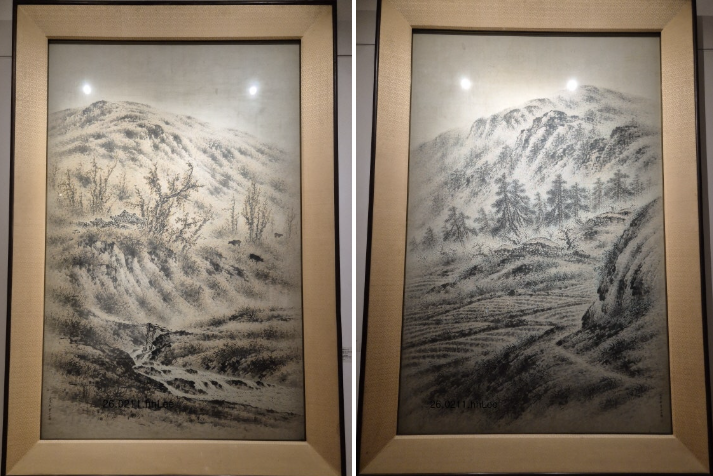 <박수근 은지화 '모자'(左) / 이중섭 은지화 '엄마와 아이들'(右)>