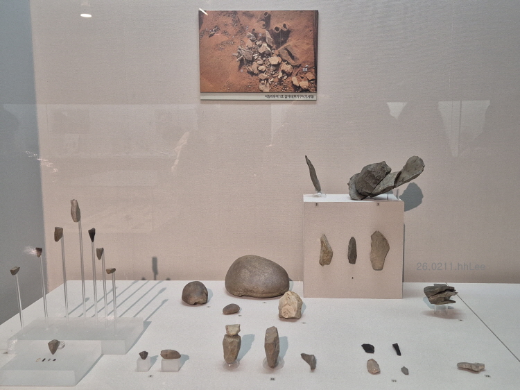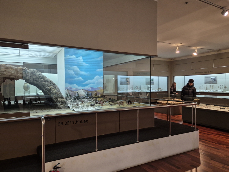 <연세대 박물관 선사실 입구의 구, 중석기 유적 층위>